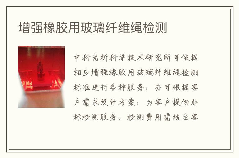 關(guān)鍵詞:增強(qiáng)橡膠用玻璃纖維繩測(cè)試機(jī)構(gòu),增強(qiáng)橡膠用玻璃纖維繩測(cè)試方法,增強(qiáng)橡膠用玻璃纖維繩測(cè)試案例