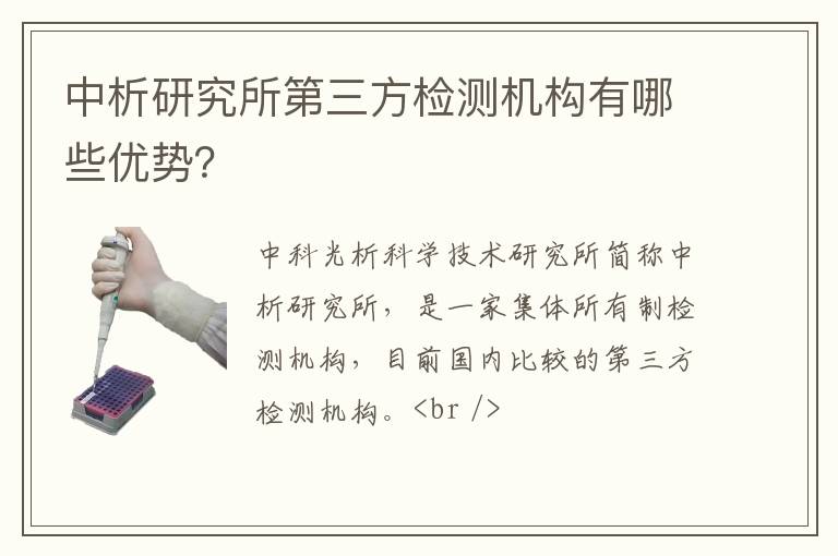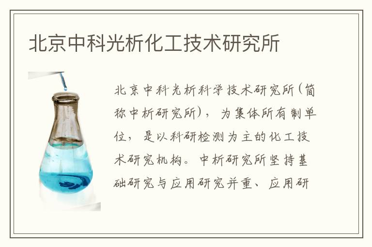 北京中科光析科學(xué)技術(shù)研究所(中析研究所/中析檢測(cè)),是以科研測(cè)試為主的技術(shù)研究機(jī)構(gòu)。中析研究所堅(jiān)持基礎(chǔ)研究與應(yīng)用研究并重、應(yīng)用研究和技術(shù)轉(zhuǎn)化相結(jié)合,發(fā)展為以“任務(wù)帶學(xué)科”為主要特色的綜合性中析研究所。經(jīng)國(guó)家有關(guān)部門(mén)批準(zhǔn),目前成為第三方分析測(cè)試技術(shù)服務(wù)單位,旗下實(shí)驗(yàn)室已經(jīng)獲得CMA資質(zhì)認(rèn)證。開(kāi)展了研發(fā)設(shè)計(jì)、分析檢測(cè)、試驗(yàn)驗(yàn)證、共性加工、信息及知識(shí)產(chǎn)權(quán)等服務(wù),為科技型企業(yè)創(chuàng)新提供公共服務(wù)。本所得到政府創(chuàng)新基金的支持,被評(píng)為國(guó)家高新技術(shù)企業(yè)。